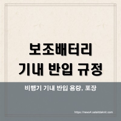 보조배터리는 리튬이온 배터리로 분류되어, 위탁수하물로의 반입이 법적으로 금지되어 있으며 반드시 기내에 직접 휴대해야 합니다.