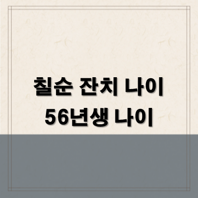 칠순 잔치 나이는 보통 세는 나이로 계산되어, 태어난 해를 포함하여 70번째 새해를 맞는 해를 의미합니다. 대한민국의 전통적인 세는 나이 기준에 따르면, 태어난 해를 한 살로 시작하여 해가 바뀔 때마다 한 살씩 더해집니다. 따라서 2025년 56년생 나이가 칠순이 됩니다.
