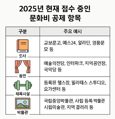 2025년 현재 접수 중인 문화비 공제 항목