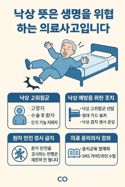 ‘낙상’이라는 단어 하나가 보여주는 의료 현장의 무게는 결코 가볍지 않습니다. ‘낙상 마렵다’라는 발언이 가능했다는 사실은 개인의 일탈이 아닌 시스템적 허점을 드러냅니다.