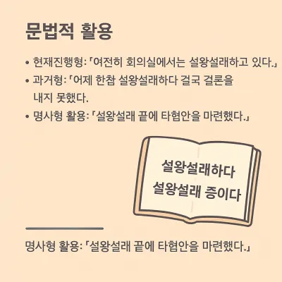 - 명사형 활용: “설왕설래 끝에 타협안을 마련했다.”