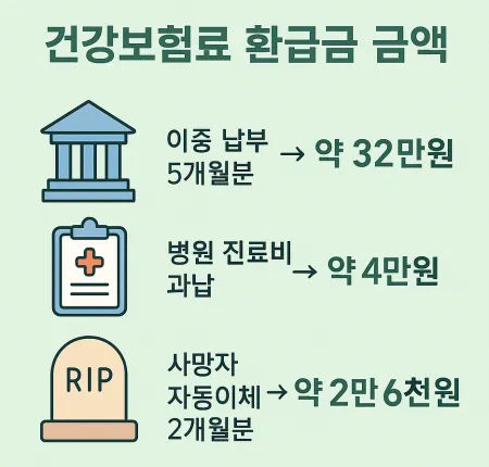 - 요양급여 초과납부: 병원에서 진료를 받은 후 본인부담금이 과도하게 청구된 경우.