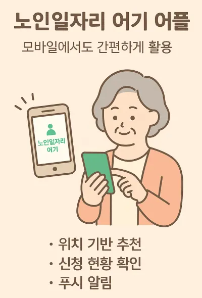 최근에는 스마트폰 보급 확대에 맞춰 **‘노인일자리 여기 어플’**도 함께 제공되고 있어, 시니어층이 더욱 손쉽게 정보를 확인할 수 있습니다. 앱은 구글 플레이스토어(Android) 및 애플 앱스토어(iOS) 모두에서 설치 가능합니다.