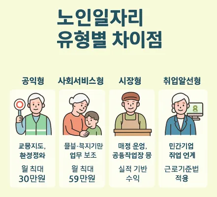5. 노인일자리 유형별 차이점 – 참여 조건과 수당 비교