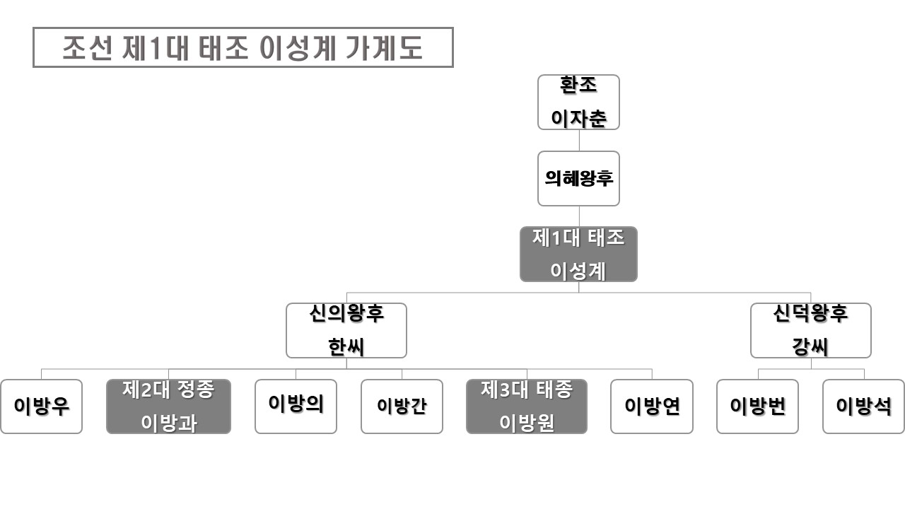 - 형제: 태종 이방원(조선 제3대 왕), 이방간(제2차 왕자의 난 주도 후 유배)