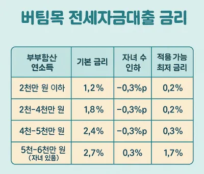 2. 버팀목 전세자금대출 금리 – 소득과 자녀 수에 따른 우대 금리