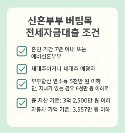 1. 신혼부부 버팀목 전세자금대출 조건 – 자격 요건과 대상 주택 기준