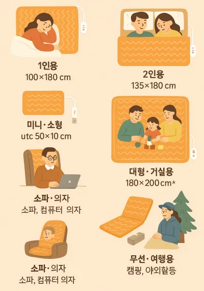 💡 추가 기능: 자동OFF(1~2시간), 다단계 온도조절(3~5단계)