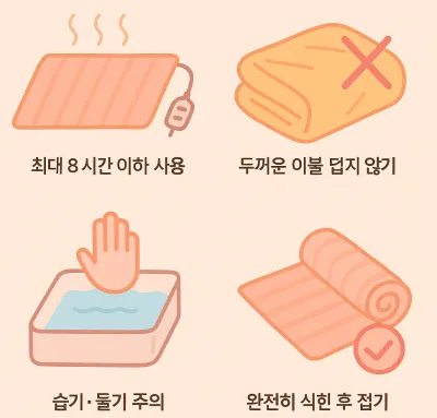전기장판은 편리하지만, 사용습관이 안전을 좌우한다. KC 인증 제품을 선택하고, 자동 차단·타이머 기능이 있는 제품을 고르면 난방비 절감과 안전을 모두 확보할 수 있다.