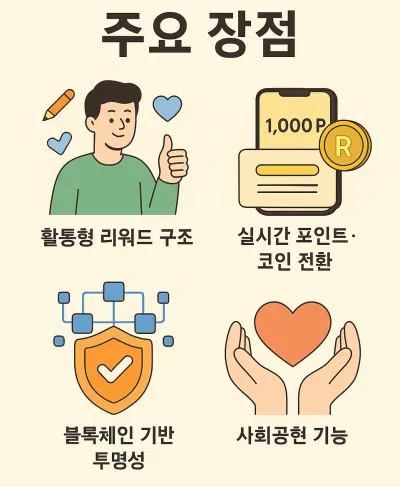 - 블록체인 투명성: 모든 적립 내역이 기록되어 조작 불가
