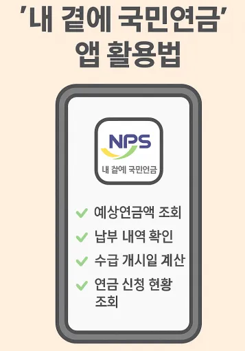 국민연금공단 공식 앱인 **‘내 곁에 국민연금’**은 연금 조회 및 신청 상태 확인에 매우 유용합니다.