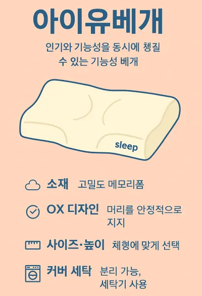 아이유베개는 단순히 모델 마케팅을 넘어, 숙면과 목 건강을 동시에 챙길 수 있는 실질적인 기능성 베개다. 사이즈와 높이를 체형에 맞게 고르고, 올바른 방향으로 사용하며, 커버 세탁과 정품 구매 관리를 병행하면 만족도가 높다. 특히 현대인의 흔한 증상인 거북목이나 어깨 통증 완화에 도움을 줄 수 있어 꾸준히 선택받는 제품이다.