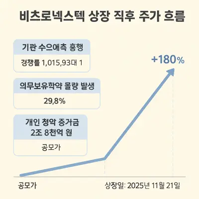 - 이는 상장일 초기 주가에 강한 심리적 상승 압력을 형성한다.