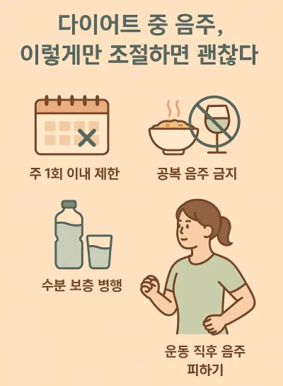 - 운동 후 음주 피하기: 혈액순환이 활발해진 직후엔 지방 저장이 더 쉬워짐