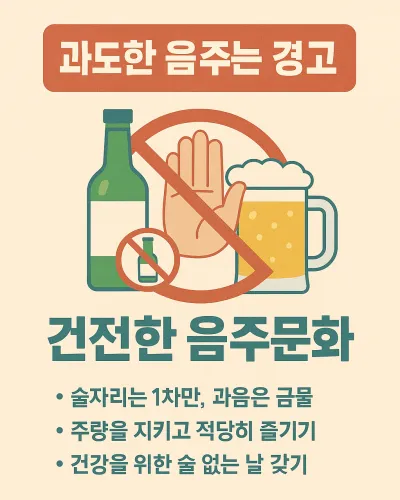- 식사 후 음주: 공복에는 흡수율이 높고 안주 과식 확률도 높습니다