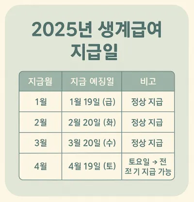 2025년 생계급여 지급일 – 매월 20일 전후, 주말이면 앞당겨지기도