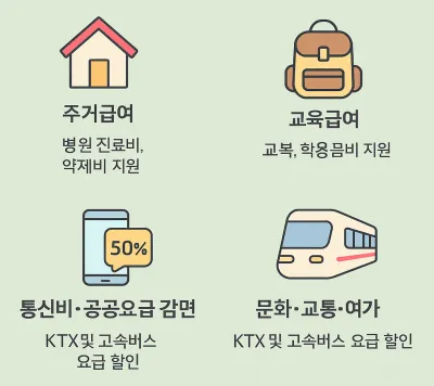 단순히 현금만 받는 것이 아니라, 생계급여 수급자는 다양한 공공요금 및 생활비 감면을 받을 수 있습니다.