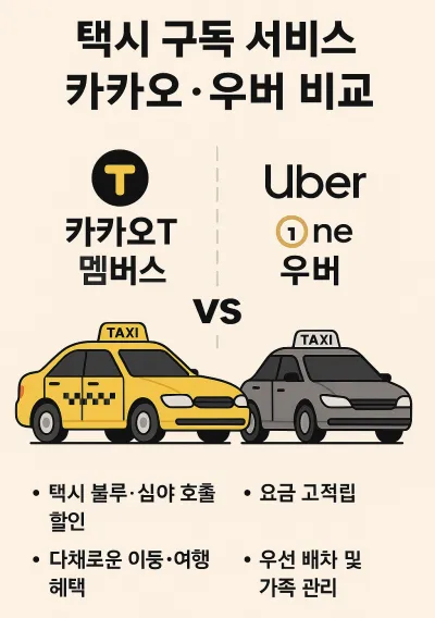 택시 구독 서비스 카카오·우버 비교: 카카오T 멤버스 vs 우버 원은 단순히 가격을 따지는 문제가 아닙니다.