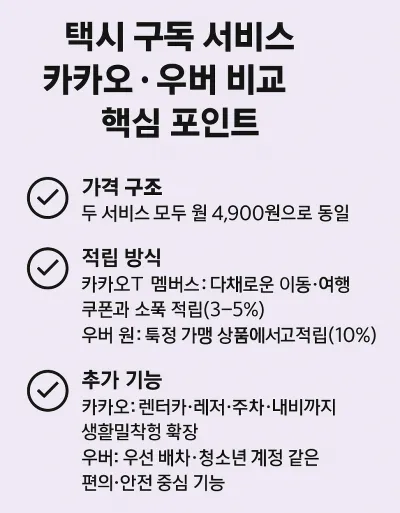 3. 택시 구독 서비스 카카오·우버 비교 핵심 포인트
