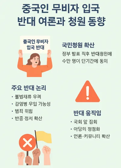 - 정책 발표 직후, 국민동의청원에 “중국인 무비자 입국 반대” 청원이 올라왔다.