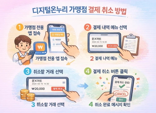 취소된 금액은 자동으로 정산 대상에서 제외되며, 별도의 추가 조치는 필요하지 않다. 이 때문에 ‘디지털온누리 가맹점 결제 취소’, ‘디지털온누리 결제 취소 방법’ 키워드 검색이 많다.