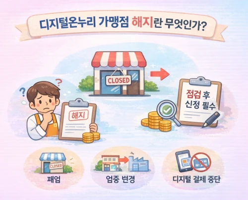 디지털온누리 가맹점 해지는 더 이상 디지털온누리상품권 결제를 받지 않겠다는 의미다. 가맹점 해지는 운영상의 선택이며, 불이익이 발생하는 것은 아니다.