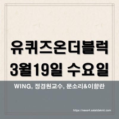 유퀴즈온더블럭 285회 3월 19일 수요일 방송의 게스트는 비트박스 챔피언 WING, 권역외상센터 정경원 교수, 배우 문소리 & 어머니 이향란 씨로, 각자의 인생 경험을 통해 시청자들에게 감동과 영감을 선사할 예정이다.